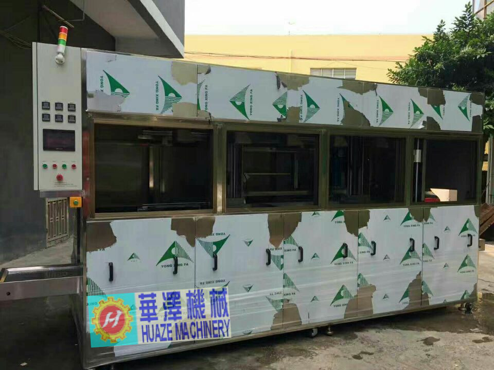 HZ-5132STGF全自動超聲波清洗機清洗過程由PLC可編程器自動控制,設(shè)備生產(chǎn)主線由1個超聲波溶劑清洗槽、1個噴淋槽2個超聲純水漂洗槽及1個慢拉脫水槽組成,共五個工位。其工作原理是利用超聲波強勁的滲透力沖擊工件表面并結(jié)合清洗劑的化學(xué)去污、除油能力,使工件的油污、粉塵迅速脫落,超聲波溶劑槽配有轉(zhuǎn)動裝置,在清洗過程中轉(zhuǎn)動清洗籃,去除清洗死角,,增強清洗效果。工作過程是操作者將裝有工件的洗籃放置進(jìn)料臺上,自動輸送至清洗機進(jìn)料位,由PLC控制機械臂依次送入各工序段,對工件進(jìn)行超聲除油、噴淋、超聲漂洗、純水漂洗,慢拉脫水后自動將洗籃送出,卸下洗籃,取出工件,即完成整個清洗過程。本設(shè)備具有清洗速度快、生產(chǎn)效率高、清洗效果好,使用方便等特點,本設(shè)備還具有外形美觀,結(jié)構(gòu)合理,使用壽命長,是理想的清洗設(shè)備。